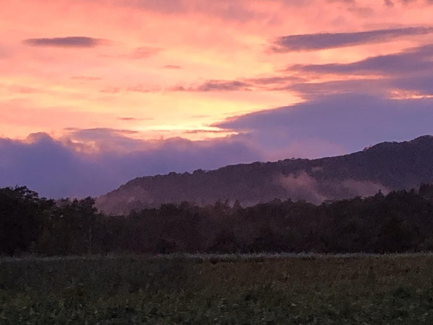 美しい夕焼け…立ち昇る川霧は、この地の寒暖差が激しいからこそ。 作物を美味しく育みます。