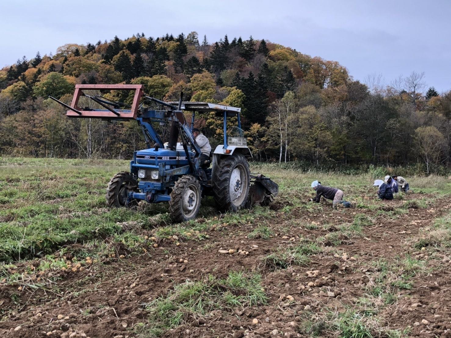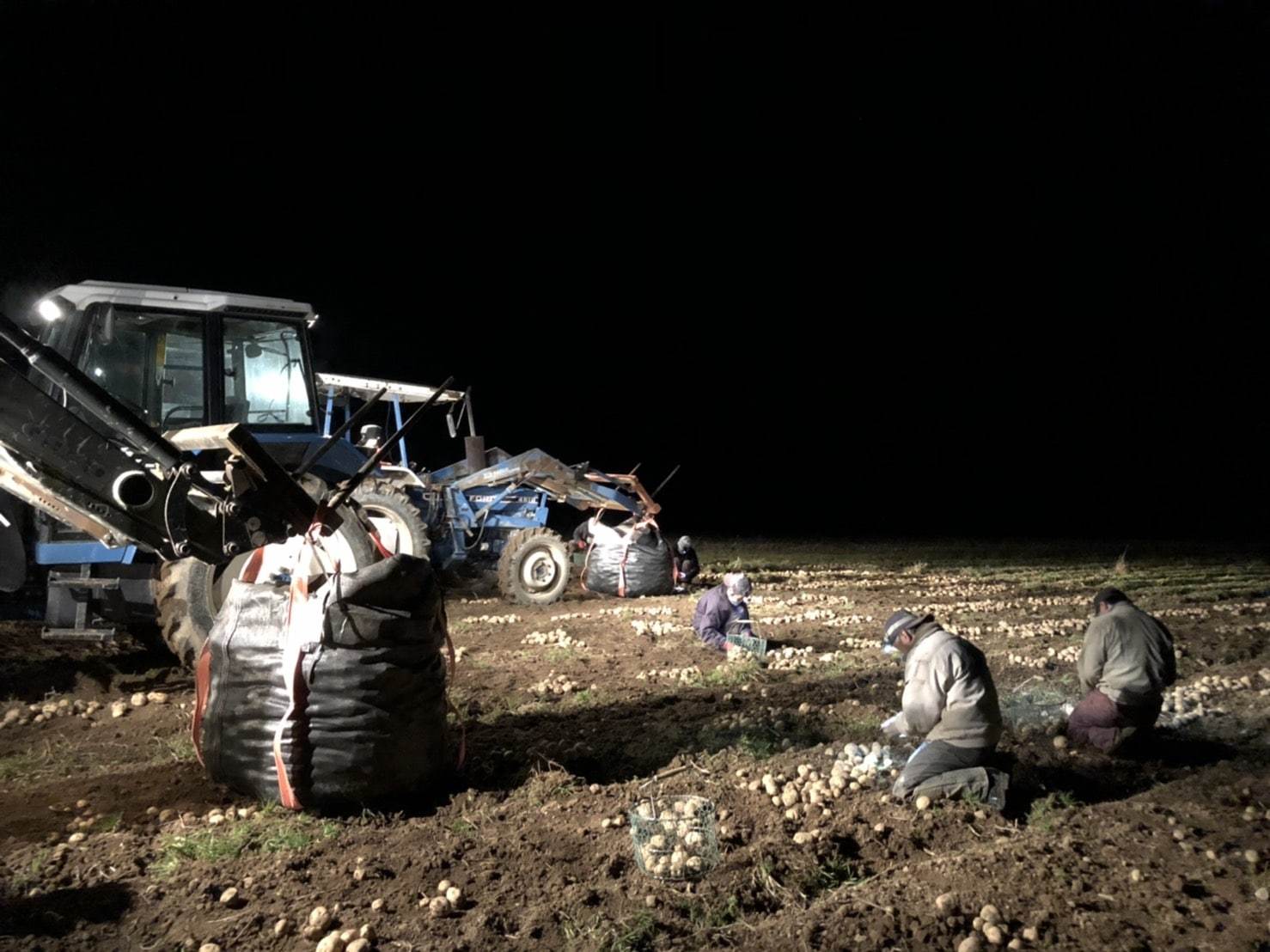 雪が積もる前に収穫を終えなければなりません。暗くなっても作業は続きます。